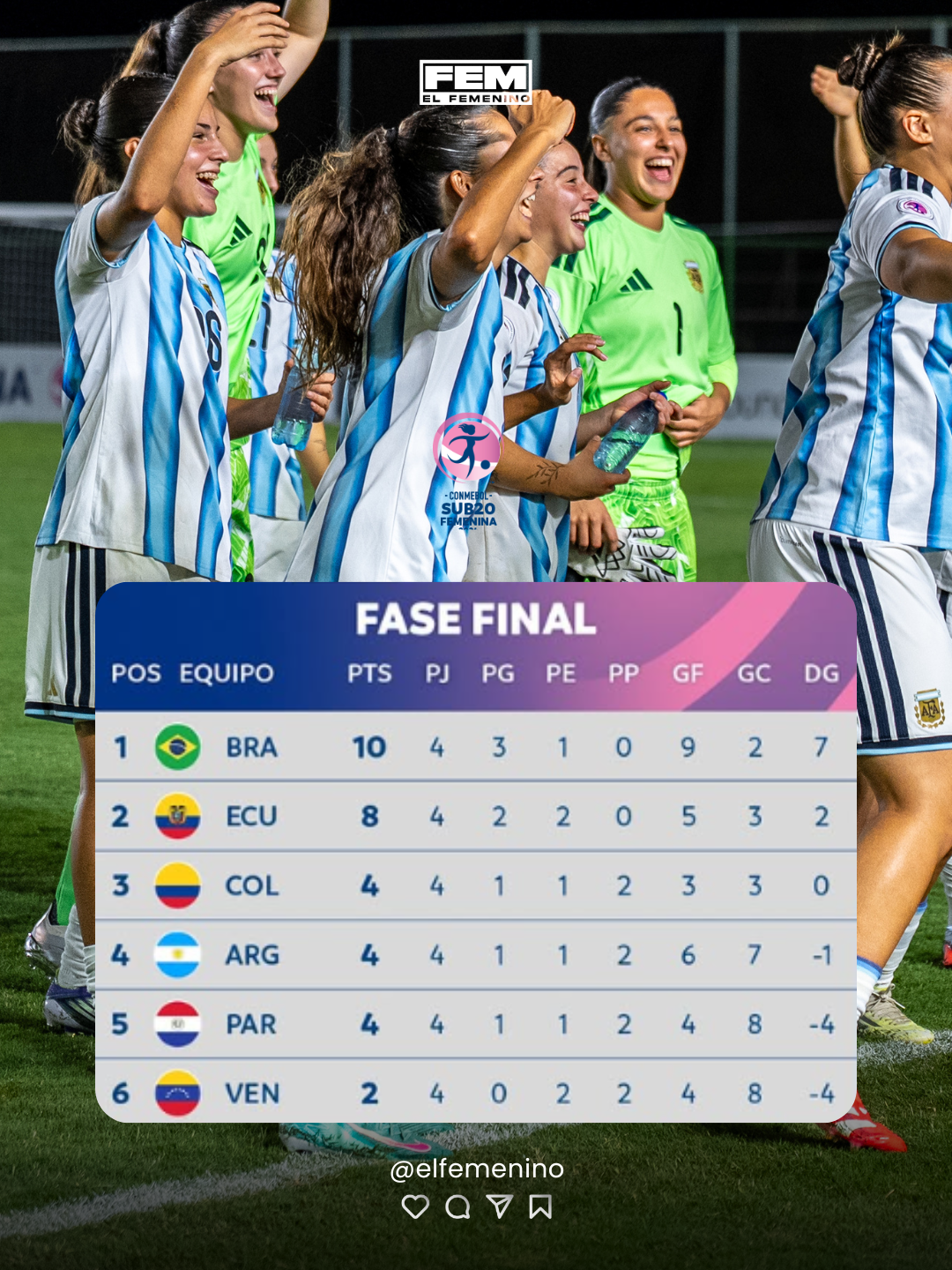 La CONMEBOL Sub 20 Femenina 2026 entra en su momento decisivo. Tras la disputa de la cuarta fecha del Hexagonal Final, todavía quedan dos cupos en juego para la Copa Mundial Femenina Sub 20 de la FIFA 2026. Brasil lidera con 10 puntos y Ecuador lo sigue con 8. Ambos se perfilan como los principales candidatos al título y a la clasificación. Detrás, Colombia, Argentina y Paraguay suman 4 unidades cada uno, mientras que Venezuela cierra con 2 puntos. El sábado 28 de febrero se disputará la última jornada y allí se definirán las dos selecciones que completarán el cuadro de clasificadas al Mundial.